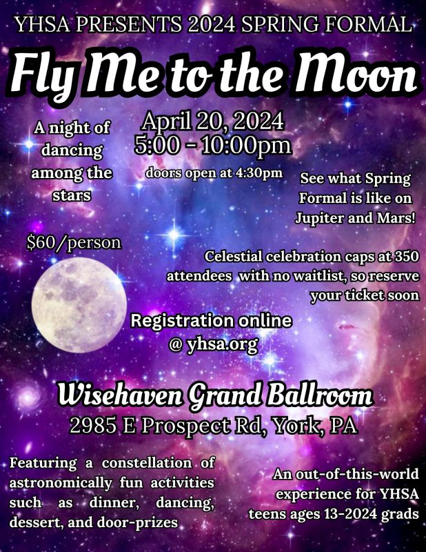 All YHSA Teens and their Guests ages 13 - to Highschool Senior are invited to attend the Spring Formal!!! (Each YHSA Teen can bring up to 1 Guest.)