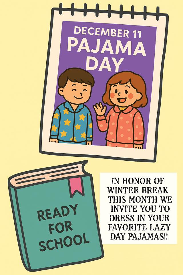 Dec 11 - Pajama Day (Winter Break is coming!!! Let's be lazy and wear our pajamas!