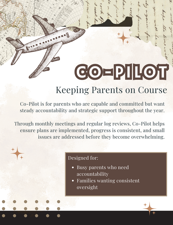 We support parents in building practical systems, meaningful routines, and organized records so that daily work leads to long-term growth. Whether you are just beginning, guiding a middle or high school student, or managing the moving pieces of multiple children, The Compass provides individualized direction tailored to your family.