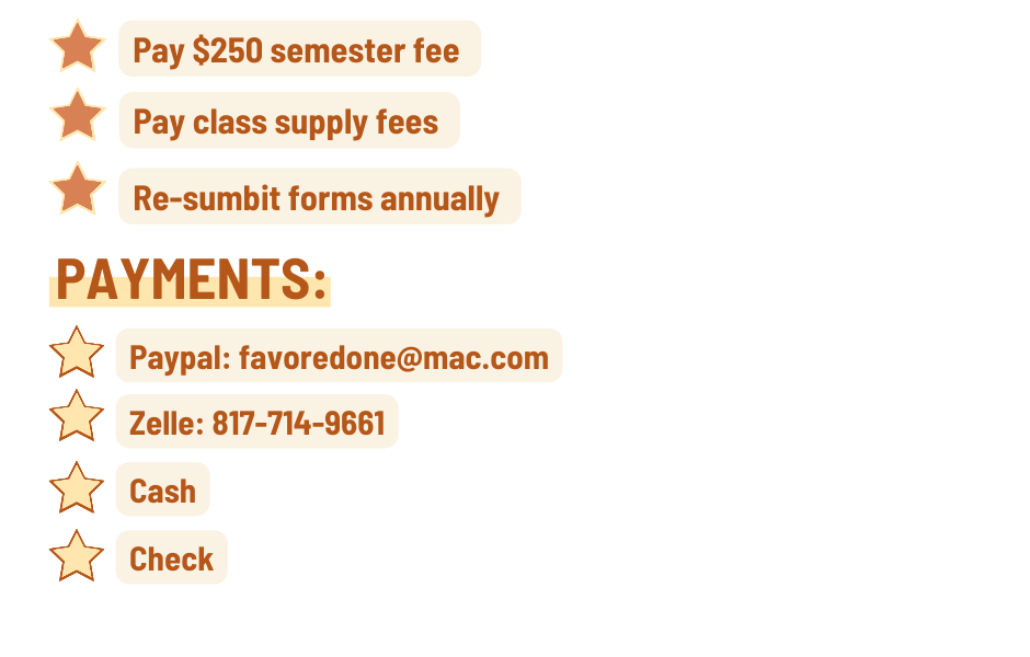 - Fill out and return stating whether or not you would like photos of your child on our social media page.