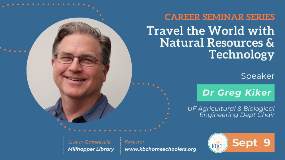 The KBCH Career Seminar Series is organized for middle and high schoolers to explore the fascinating ways people make a living. Invite your friends! We kick off our 2025-26 season with Dr Greg Kiker, University of Florida Department Chair of Agricultural and Biological Engineering.