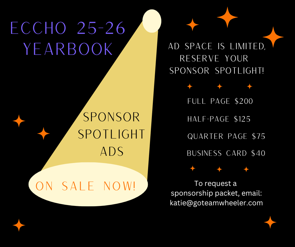 To request a sponsorship packet, respond to this email. Your ad is secured when both the payment and the completed sponsorship form are received by ECCHO. Upon request, and with a minimal design fee, an Eagles Yearbook student will design your Spotlight ad.