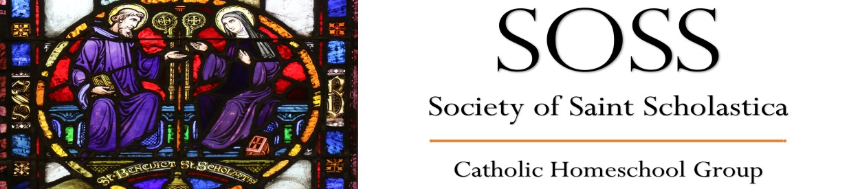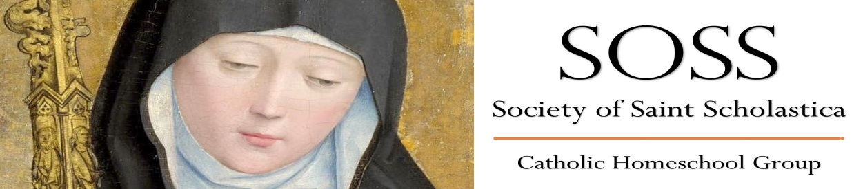 We, the members of the Society of Saint Scholastica (SOSS) Catholic Home School Group, have adopted policies (stated in the Policies and Mission Statement), effective August 15, 2002, on the Feast of the Assumption of the Blessed Virgin Mary, so that we, Catholic home school families, may have the spiritual, academic, and practical support from each other as we endeavor to educate our children. We desire that our children have other Catholic home school children with whom to socialize, so they mutually strengthen their Catholic faith and values.