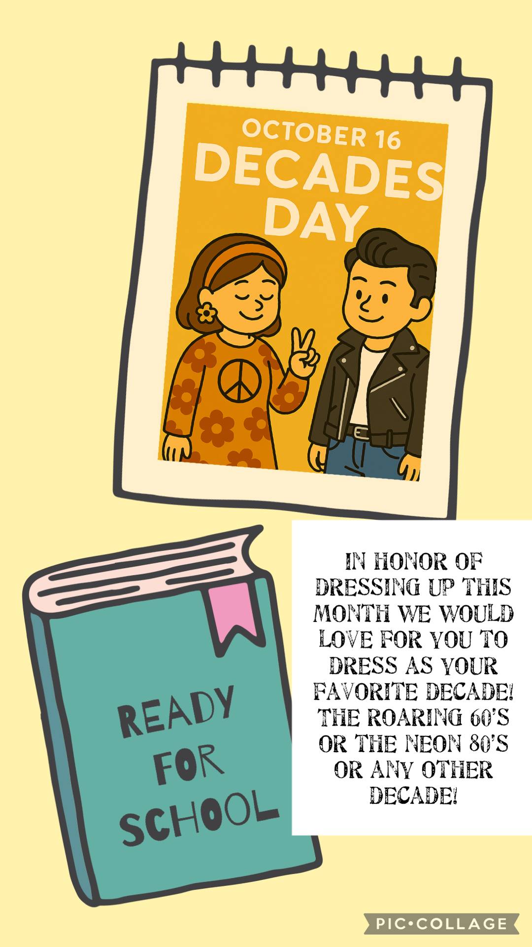 Oct 16 - Decades Day (Dress from any decade before the year 2000. The Roaring 60's or the Neon 80's are calling you! )