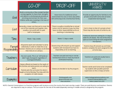 We meet on Fridays at Parkway Church in McKinney. Our co-op model is not a drop-off program. All of our moms serve each other and our kids in different ways based on our talents. For every hour your students are in a class, you are serving somewhere. It could be teaching, co-teaching, grading, setup/cleanup, administrative help, etc. But every mom does get an hour to spend time relaxing with other moms and build community. We call this Mom's Community Hour.